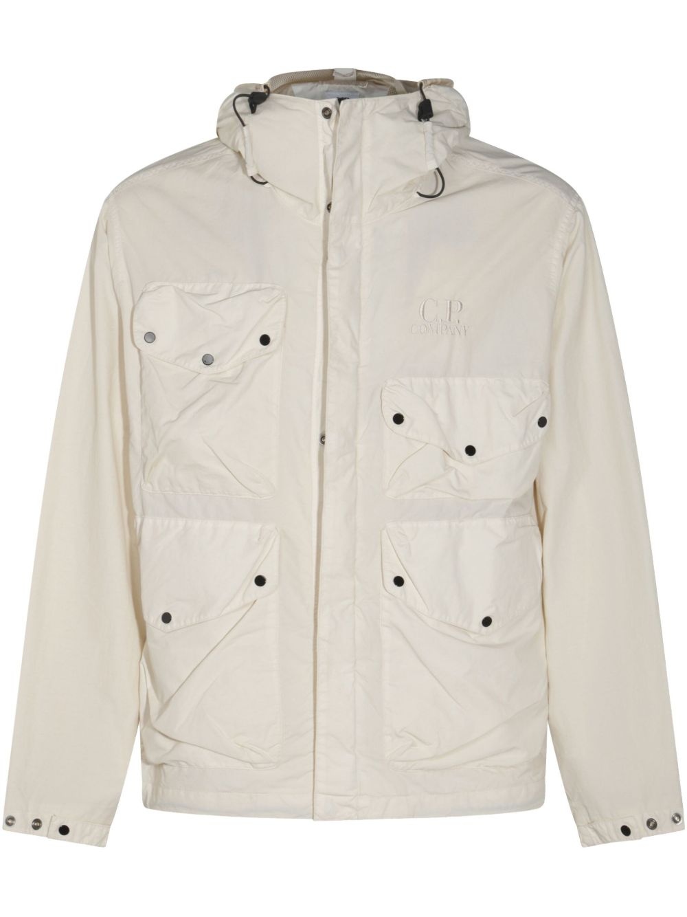 multi-pocket jacket Highlights - White - Front zip fastening - Drawstring hood - Signature goggles detail - Four front patch pockets Imported Composition Polyamide 100%