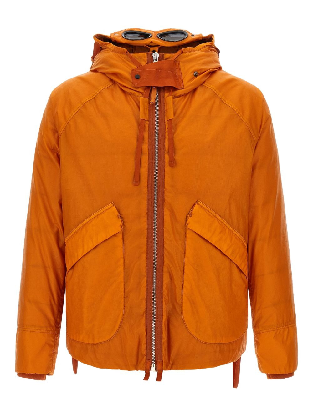 padded hooded jacket Highlights - Orange - Hood - Front zip closure - Long sleeves - Knitted inner cuffs - C.p. company suggests removing any detachable accessories before washing. Imported Composition Outer: Polyamide 100%, Polyurethane Resin 100% Lining: Polyamide 100%, Duck Down 90%, Duck Feathers 10% Washing instructions Machine Wash