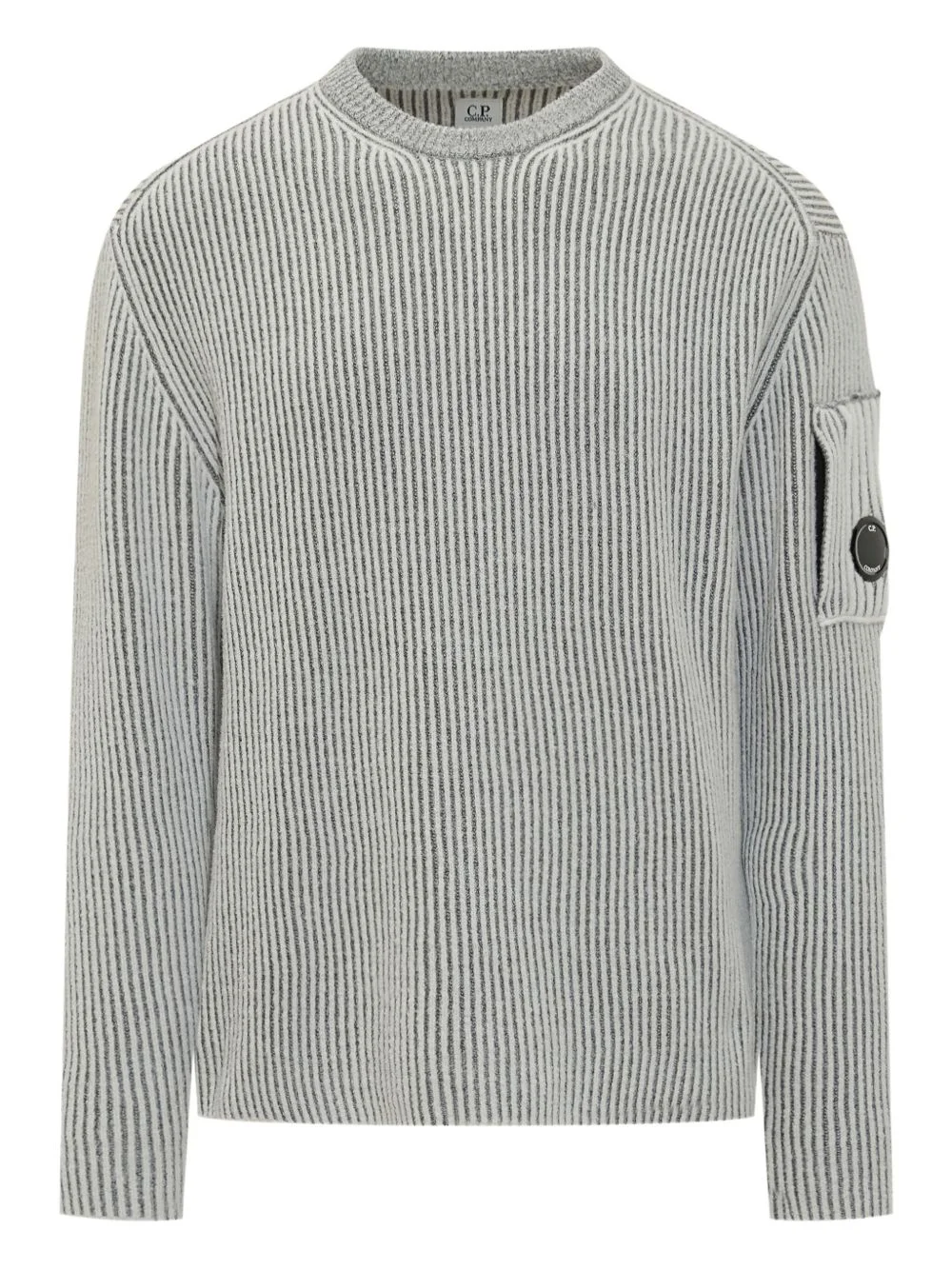 pocket striped sweater Highlights - Grey - Striped - Crew neck - Long sleeves - Logo detail - C.p. company suggests removing any detachable accessories before washing. Imported Composition Polyamide 70%, Wool 29%, Other fibres 1% Washing instructions Hand Wash