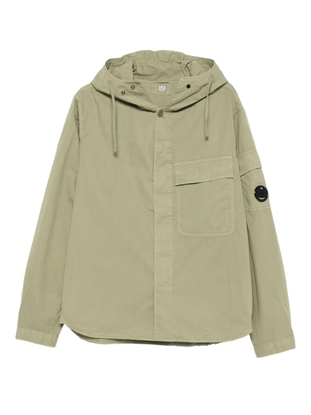 pocketed hooded jacket Highlights - Light green - Hooded neckline - Patch pocket - Button fastening - Long sleeves - Lens detail - C.p. company suggests removing any detachable accessories before washing. Imported Composition Cotton 100% Washing instructions Machine Wash