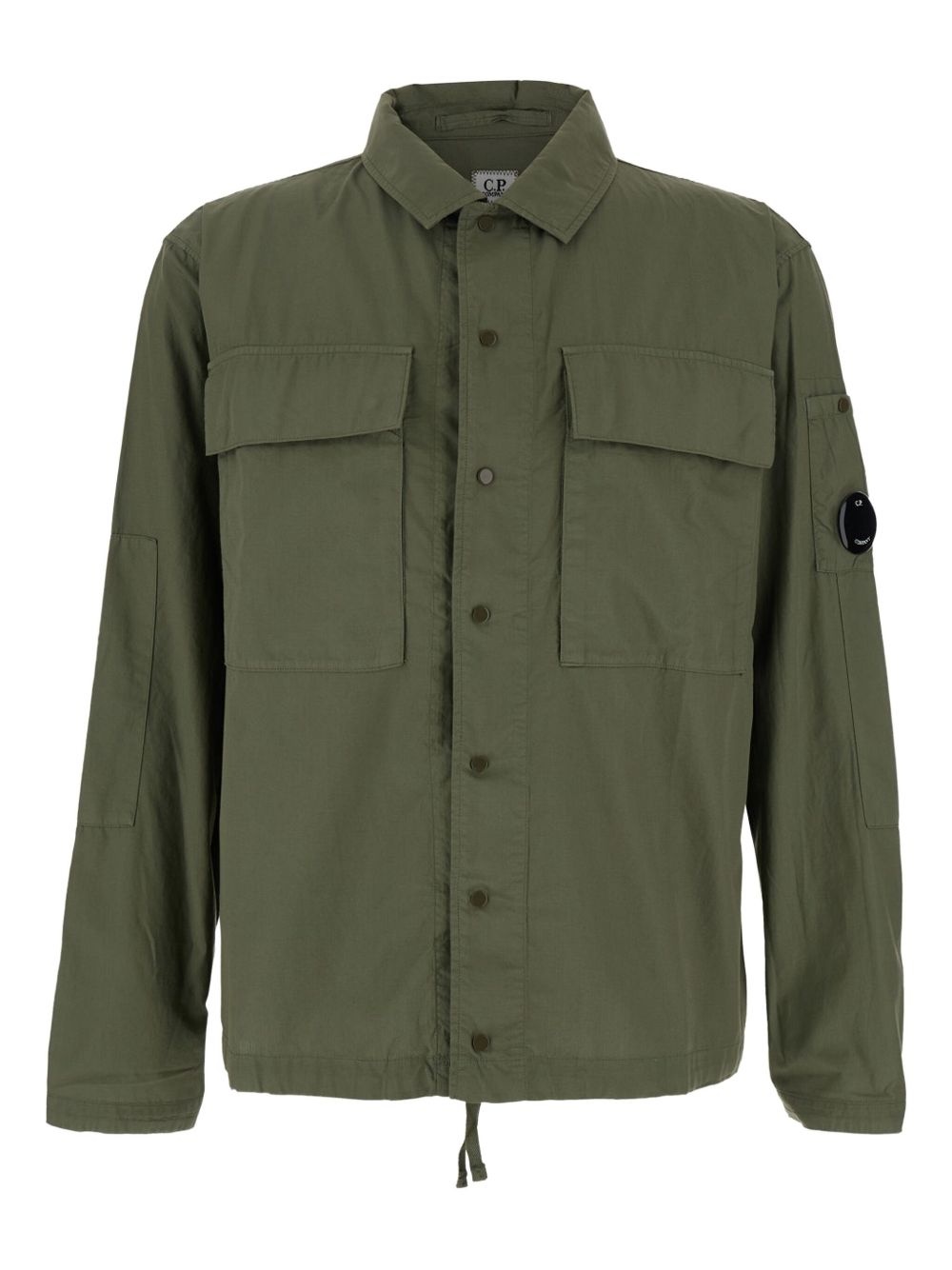 utility-pocket shirt jacket Highlights - Olive green - Button-up front - Two chest pockets - Adjustable drawstring hem - Sleeve patch pocket - Buttoned cuff detail - C.p. company suggests removing any detachable accessories before washing. Imported Composition Cotton 100%