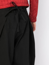 cotton wide-leg trousers black cotton front button fastening rear tie fastening two side welt pockets wide leg Imported Composition Body: Cotton 100% SIZE & FIT Model measurements Height 6 ft 2 in(1.87 m) Bust/Chest 34.25 in(87 cm) Hips 36.22 in(92 cm) Waist 29.52 in(75 cm) FittingInformation This piece fits true to size. We recommend you get your regular size Designed for a slim fit at the waist and loose over the leg Made with a mid-weight non-stretch fabric Washing instructions Hand Wash