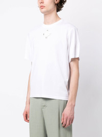 eyelet-detail short-sleeve T-shirt cloud white cotton metal eyelet detailing round neck short sleeves straight hem Imported Composition pure cotton 100% SIZE & FIT Model measurements Height 6 ft 3 in(1.9 m) Bust/Chest 34.64 in(88 cm) Hips 36.61 in(93 cm) Waist 27.55 in(70 cm) Measurement CHEST 44.88 in(114 cm) LENGTH 25.59 in(65 cm) SLEEVE LENGTH 9.05 in(23 cm) Shoulder Width 18.89 in(48 cm) FittingInformation This piece fits true to size. We recommend you get your regular size Cut for a loose fit Made with a mid-weight fabric Washing instructions Hand Wash