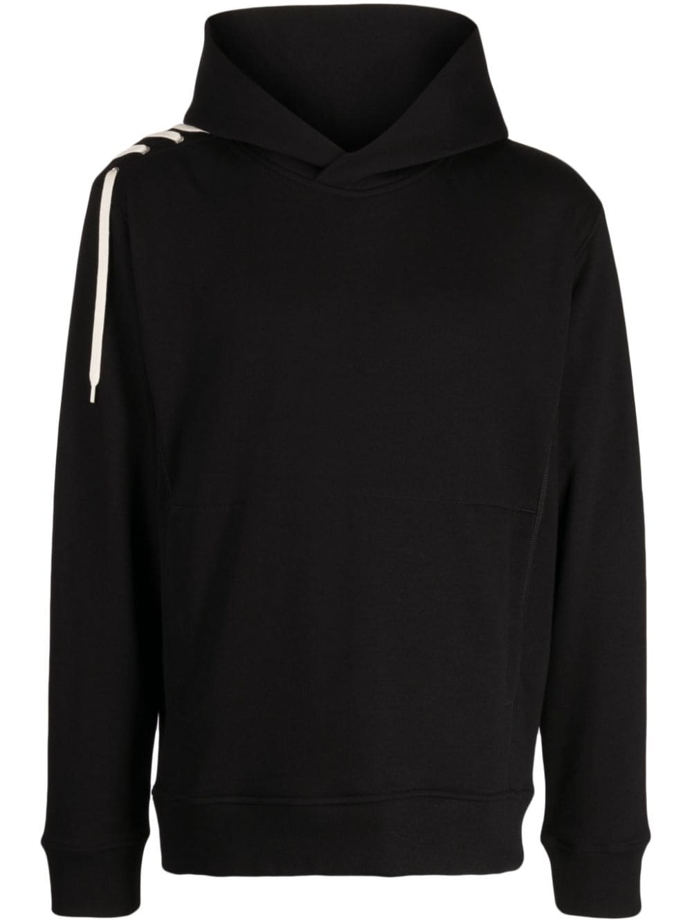lace-up detailing hoodie Highlights - Black - Organic cotton - Lace-up detailing - Classic hood - Long sleeves - Ribbed cuffs and hem - Straight hem Made in Italy Composition Body: Organic Cotton 100% SIZE & FIT Model measurements Height 6 ft 2 in(1.87 m) Bust/Chest 31.49 in(80 cm) Hips 37.79 in(96 cm) Waist 27.95 in(71 cm) Measurement CHEST 47.24 in(120 cm) SLEEVE LENGTH 25.59 in(65 cm) LENGTH 27.55 in(70 cm) Shoulder Width 20.47 in(52 cm) FittingInformation Designed to be unstructured, offering a loose fit throughout Made from a midweight non-stretch fabric, this piece offers minimal elasticity when worn This piece fits true to size – take your usual size Washing instructions Hand Wash