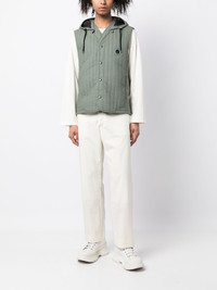 quilted hooded gilet Highlights - Sage green - Quilted - Eyelet detailing - Detachable drawstring hood - Front button fastening - Sleeveless - Front zip fastening pockets - Straight hem Made in Italy Composition Polyester 84%, Polyurethane 16% SIZE & FIT Model measurements Height 6 ft 2 in(1.88 m) Bust/Chest 31.88 in(81 cm) Hips 35.82 in(91 cm) Waist 27.55 in(70 cm) FittingInformation Designed for a slim fit, offering a comfortable fit that sits just away from the body Made from a padded non-stretch fabric, giving it no natural elasticity This piece fits true to size – if you would prefer a looser fit to layer, take one size up