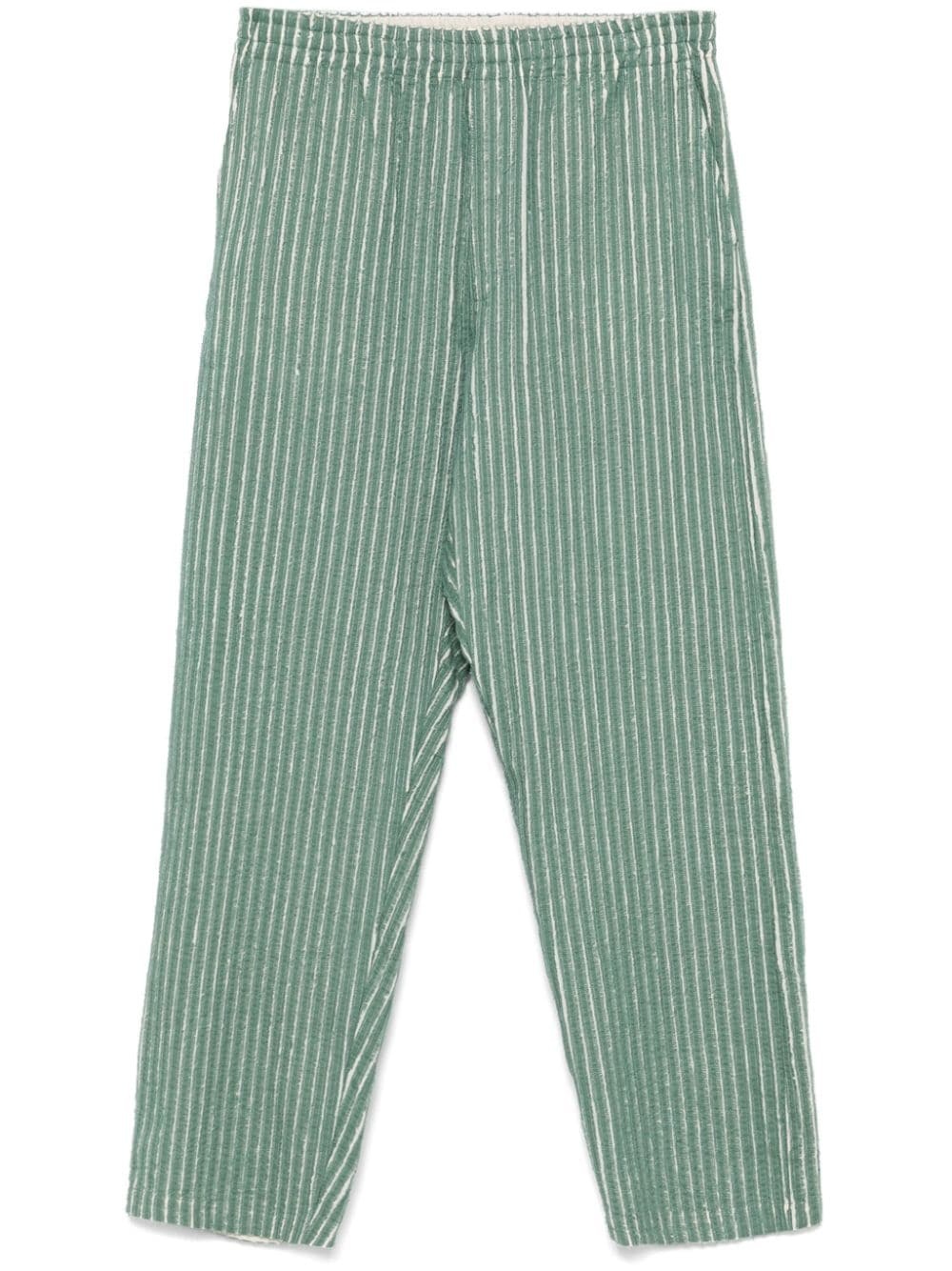 striped trousers Highlights - Mint green/cream white - Cotton - Frayed detailing - Vertical stripe pattern - Elasticated waistband with internal drawstring - Two diagonal pockets to the sides - Two rear patch pockets - Tapered leg Imported Composition Cotton 100% SIZE & FIT Model measurements Height 6 ft 2 in(1.87 m) Bust/Chest 37.79 in(96 cm) Hips 37.79 in(96 cm) Waist 30.31 in(77 cm) FittingInformation Designed for a straight-leg, allowing for an unrestricted and comfortable fit over the leg Adjust this piece’s waistband to your preference using the drawstring Made from a midweight non-stretch fabric