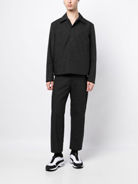 wide-leg cropped trousers Highlights - Black - Concealed front fastening - Belt loops - Two rear welt pockets - Cropped - Wide leg Made in Italy Composition Body: Polyester 67%, Nylon 33% Lining: Polyester 100% SIZE & FIT Model measurements Height 6 ft 2 in(1.89 m) Bust/Chest 37.4 in(95 cm) Hips 36.61 in(93 cm) Waist 28.34 in(72 cm) FittingInformation Designed with a wide leg, offering a loose and roomy fit Made from a lightweight non-stretch fabric This piece fits true to size – take your usual size Washing instructions Dry Clean Only