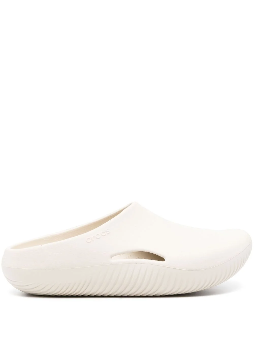 logo-embossed round-toe slides Highlights - White - Embossed logo to the side - Cut-out detailing - Round toe - Branded insole - Flat rubber sole Imported Composition Sole: Rubber 100% Outer: Rubber 100% Lining: Rubber 100%