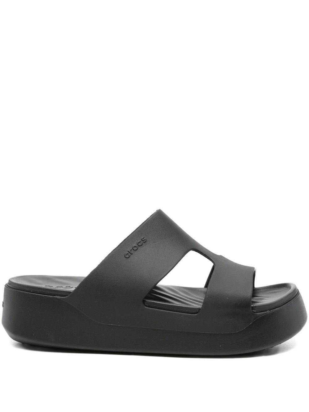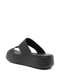 platform double-strap slides Highlights - Black - Platform sole - Double strap - Cut-out detail - Slip-on style Imported Composition Outer: Polyethylene vinyl acetate (PEVA) 100% Lining: Polyethylene vinyl acetate (PEVA) 100% Sole: Polyethylene vinyl acetate (PEVA) 100% SIZE & FIT Measurement HEEL 1.57 in(4 cm)