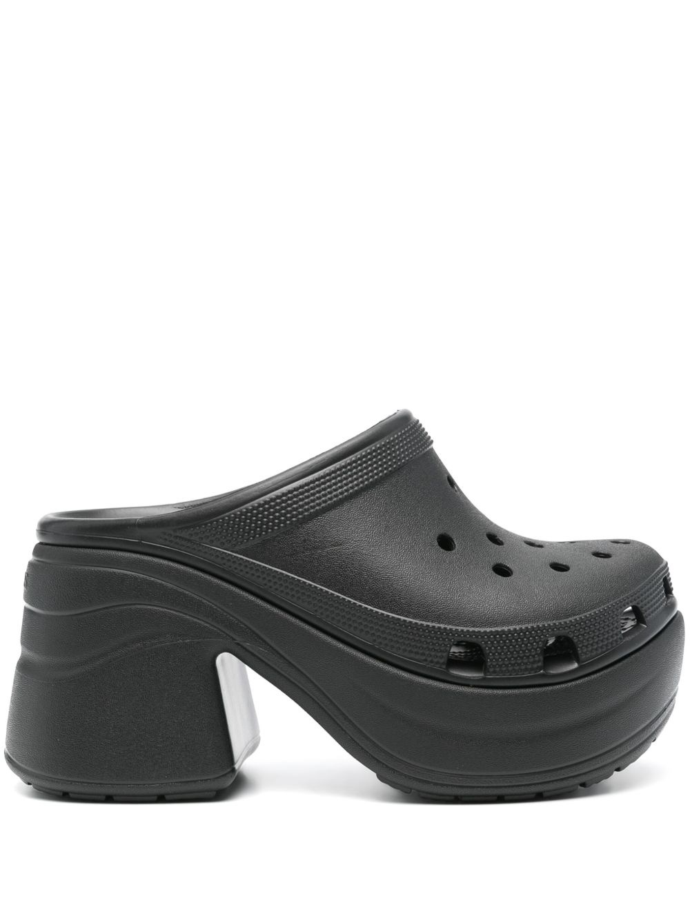 90mm Siren mules Highlights - Black - Perforated detailing - Almond toe - Branded insole - Rubber sole - 90mm high block heel - Slip-on style Imported Composition Outer: Polyurethane 100% Sole: Rubber 100% Lining: Polyurethane 100% SIZE & FIT Measurement HEEL 3.54 in(9 cm) Sole height 1.77 in(4.5 cm)