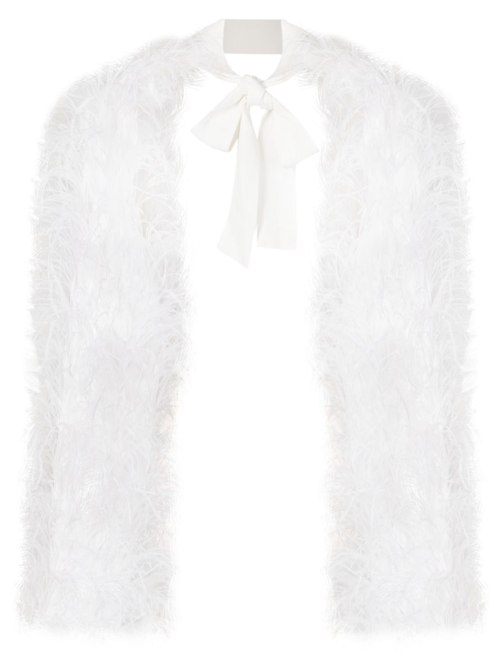 Audrey feather-trim bolero jacket Highlights - Off-white - Ostrich feather - Feather-trim detailing - Pussy-bow fastening - Long sleeves - Cropped - This piece features very delicate detailing. handle with extreme care to avoid damage such as broken feathers or loss of sequins. Imported Composition Viscose 100%, Ostrich Feather 100% SIZE & FIT Model measurements Height 5 ft 10 in(1.77 m) Bust/Chest 31.49 in(80 cm) Hips 36.22 in(92 cm) Waist 25.59 in(65 cm) FittingInformation Designed for a slim fit that sits just away from the body offering a close yet comfortable fit The tie fastening gives an adaptable and personalised fit Made from a midweight non-stretch fabric This piece fits true to size – take your usual size