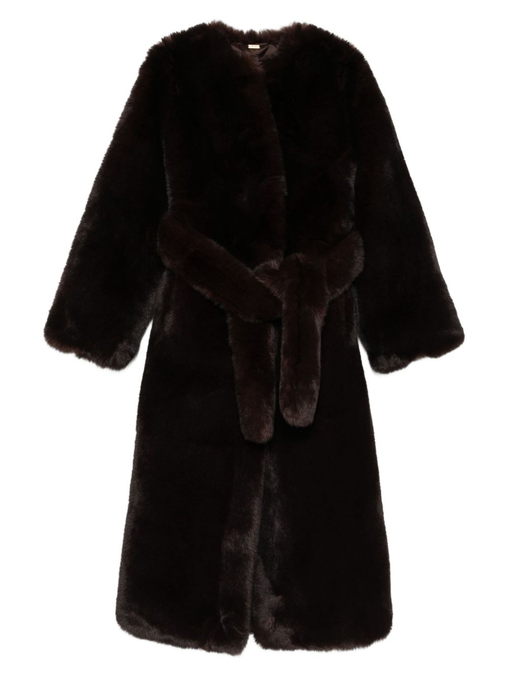 belted faux-fur coat Highlights - Brown - Faux fur - Self-tie belt - Long sleeves - Button closure Imported Composition Artificial Fur 100% SIZE & FIT Model measurements Height 5 ft 11 in(1.8 m) Bust/Chest 31.49 in(80 cm) Hips 36.61 in(93 cm) Waist 24.4 in(62 cm) Washing instructions Read Manufacturer Guidelines