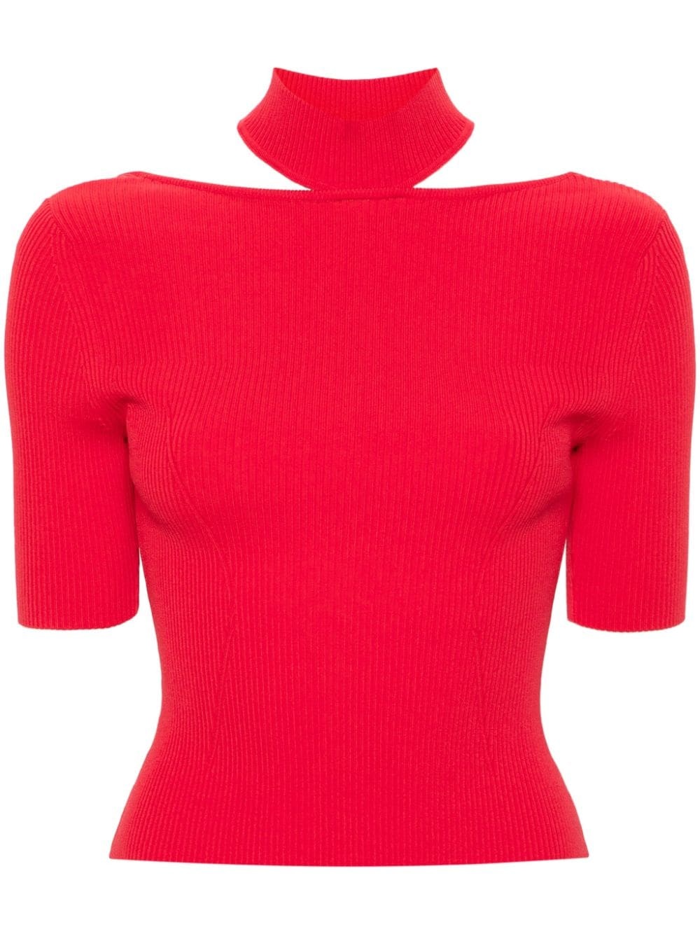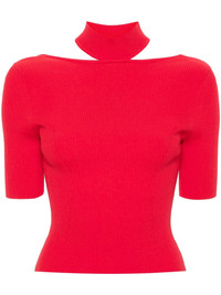 Brianna ribbed knitted top Highlights - Lollipop red - Knitted construction - Fine ribbed - High neck - Scoop back - Short sleeves - Straight hem Imported Composition Viscose 60%, Nylon 40% SIZE & FIT Model measurements Height 5 ft 10 in(1.78 m) Bust/Chest 31.49 in(80 cm) Hips 37 in(94 cm) Waist 23.62 in(60 cm) FittingInformation Designed for a close fit throughout Made with a midweight knit, this piece offers some stretch This piece fits true to size – take your usual size Washing instructions Hand Wash