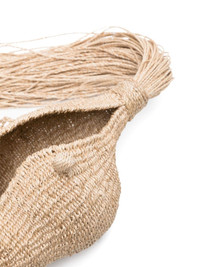 Camilla interwoven fringed clutch bag Highlights - Beige - Interwoven design - Fringe detailing - Sculpted design - Toggle fastening - Main compartment - Cotton lining - All products are handcrafted. Imported Composition Outer: Abaca 100% SIZE & FIT Model measurements Height 5 ft 9 in(1.76 m) Bust/Chest 31.88 in(81 cm) Hips 35.43 in(90 cm) Waist 24.8 in(63 cm) Measurement DEPTH 5.11 in(13 cm) HEIGHT 14.17 in(36 cm) WIDTH 14.17 in(36 cm)