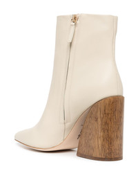 Christie block-heel boots Cult Gaia's modern aesthetic is demonstrated by these Christie boots: the off-white leather construction is contrasted with a wooden block heel, creating a bold finish. Imported Composition Outer: Calf Leather 100% Lining: Leather 100% Sole: Leather 100%