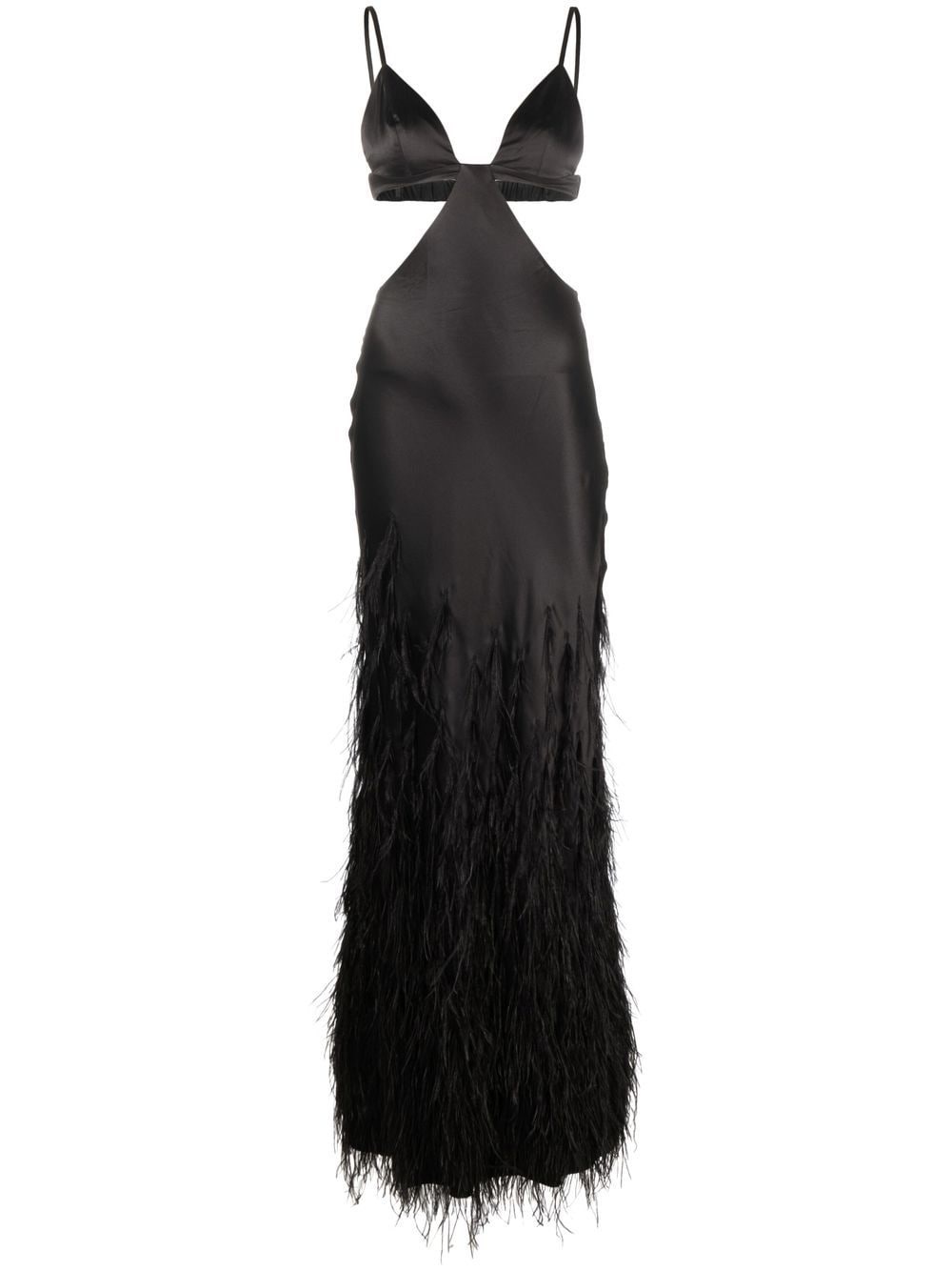 Raisa feather-embellished gown LA-based label Cult Gaia presents this black satin evening dress as part of the label's AW22 collection. Fabricated from soft silk, the design features tonal feather detailing and cut-outs at the waist. Highlights - Black - Silk - V-neck - Spaghetti straps - Cut-out detailing - Open back - Feather detailing Imported Composition Outer: Silk 100%, Feather 100% Lining: Polyester 100% SIZE & FIT Model measurements Height 5 ft 10 in(1.77 m) Bust/Chest 32.28 in(82 cm) Hips 35.03 in(89 cm) Waist 25.19 in(64 cm) FittingInformation This piece fits true to size. We recommend you get your regular size Designed for a close fit at the bust, waist and hips Made with a mid-weight non-stretch fabric Washing instructions Specialist Cleaning