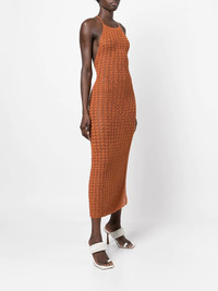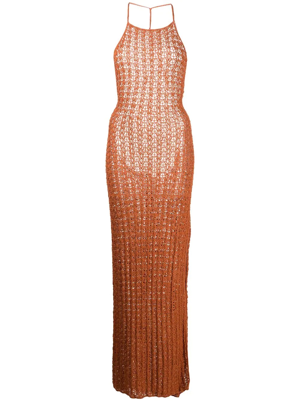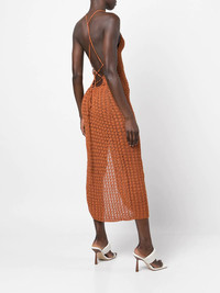 Demi crochet dress spice orange crochet design square neck rear tie fastening crossover shoulder straps slit detailing mid-length Imported Composition Body: Viscose 92%, Nylon 8% SIZE & FIT Model measurements Height 5 ft 10 in(1.79 m) Bust/Chest 31.1 in(79 cm) Hips 33.85 in(86 cm) Waist 22.83 in(58 cm) Washing instructions Dry Clean Only