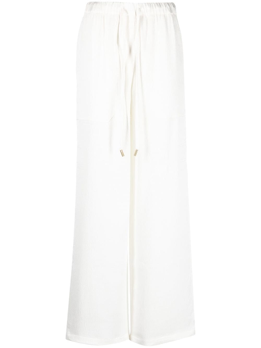 drawstring straight-leg trousers white high waist drawstring fastening waist two side slit pockets two rear patch pockets straight leg Imported Composition Polyester 98%, Spandex/Elastane 2% SIZE & FIT Model measurements Height 5 ft 10 in(1.78 m) Bust/Chest 33.07 in(84 cm) Hips 35.82 in(91 cm) Waist 25.98 in(66 cm) FittingInformation This piece fits true to size. We recommend you get your regular size Designed to be fitted at the waist, loose over the leg Made with a mid-weight stretch fabric Washing instructions Hand Wash