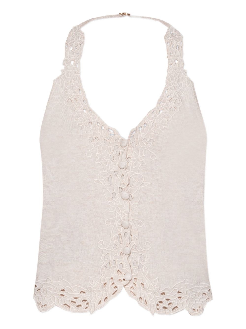 embroidered button-front top Highlights - Cream - Embroidered motif - Button fastening - Sleeveless design Imported Composition BCI Cotton 45%, Linen/Flax 35%, Polyester 20% Washing instructions Dry Clean Only