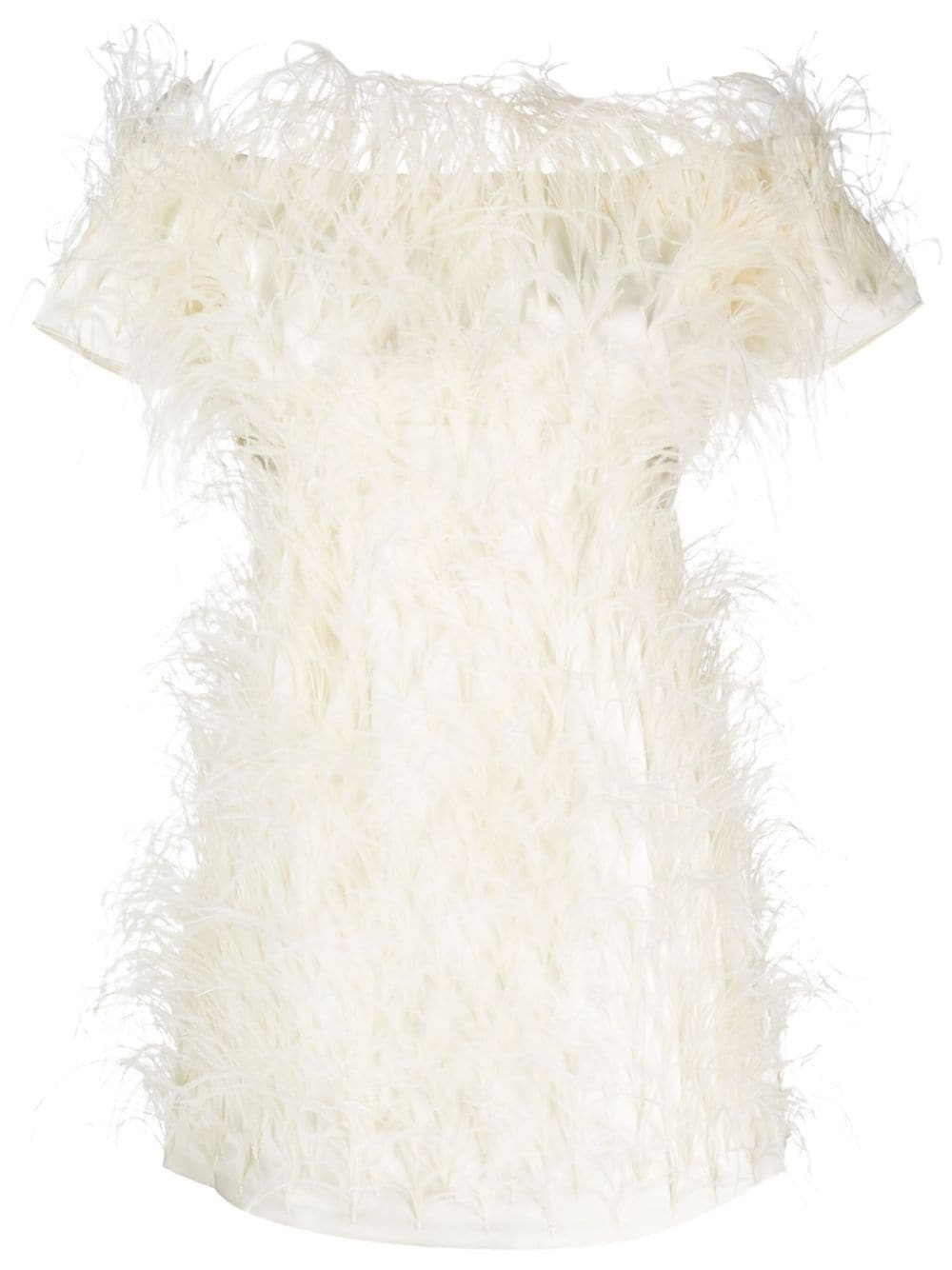 feather-detailing off-shoulder dress Highlights - Off-white - Feather down - Feather detailing - Cut-out detailing - Off-shoulder - Sleeveless - Straight hem - Thigh-length Imported Composition Polyester 100% SIZE & FIT Model measurements Height 5 ft 11 in(1.8 m) Bust/Chest 33.07 in(84 cm) Hips 37 in(94 cm) Waist 25.59 in(65 cm) FittingInformation Designed for a slim fit that sits just away from the body offering a close yet comfortable fit Made from a midweight non-stretch fabric This piece fits true to size – take your usual size Washing instructions Dry Clean Only