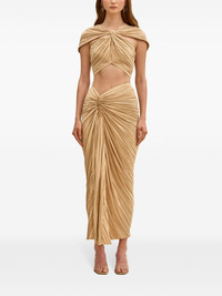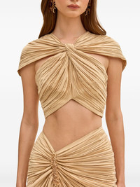 Genesis top Highlights - Sand beige - Satin finish - Plisse effect - Twist detailing - V-neck - Rear zip fastening - Short draped sleeves - Cropped - High-low hem Imported Composition Polyester 100%