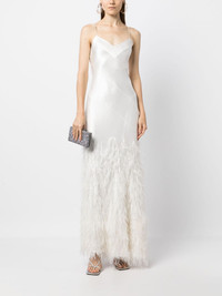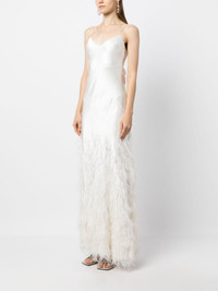 Hansal silk gown Highlights - Off-white - Silk - Ostrich feather - Satin finish - Feather detailing - V-neck - Spaghetti straps - Long length Made in Italy Composition Silk 100% SIZE & FIT Model measurements Height 5 ft 11 in(1.8 m) Bust/Chest 28.34 in(72 cm) Hips 35.43 in(90 cm) Waist 23.62 in(60 cm) Washing instructions Dry Clean Only