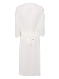 Inga tied cover-up Highlights - Off-white - Silk-linen blend - Crinkled finish - Semi-sheer construction - Plunging v-neck - Ruched detailing - Wide sleeves - Braid detailing - Tied waist - Two thigh-high side slits - Straight hem - Mid-length Imported Composition Rayon 50%, Silk 30%, Linen/Flax 20% Washing instructions Hand Wash