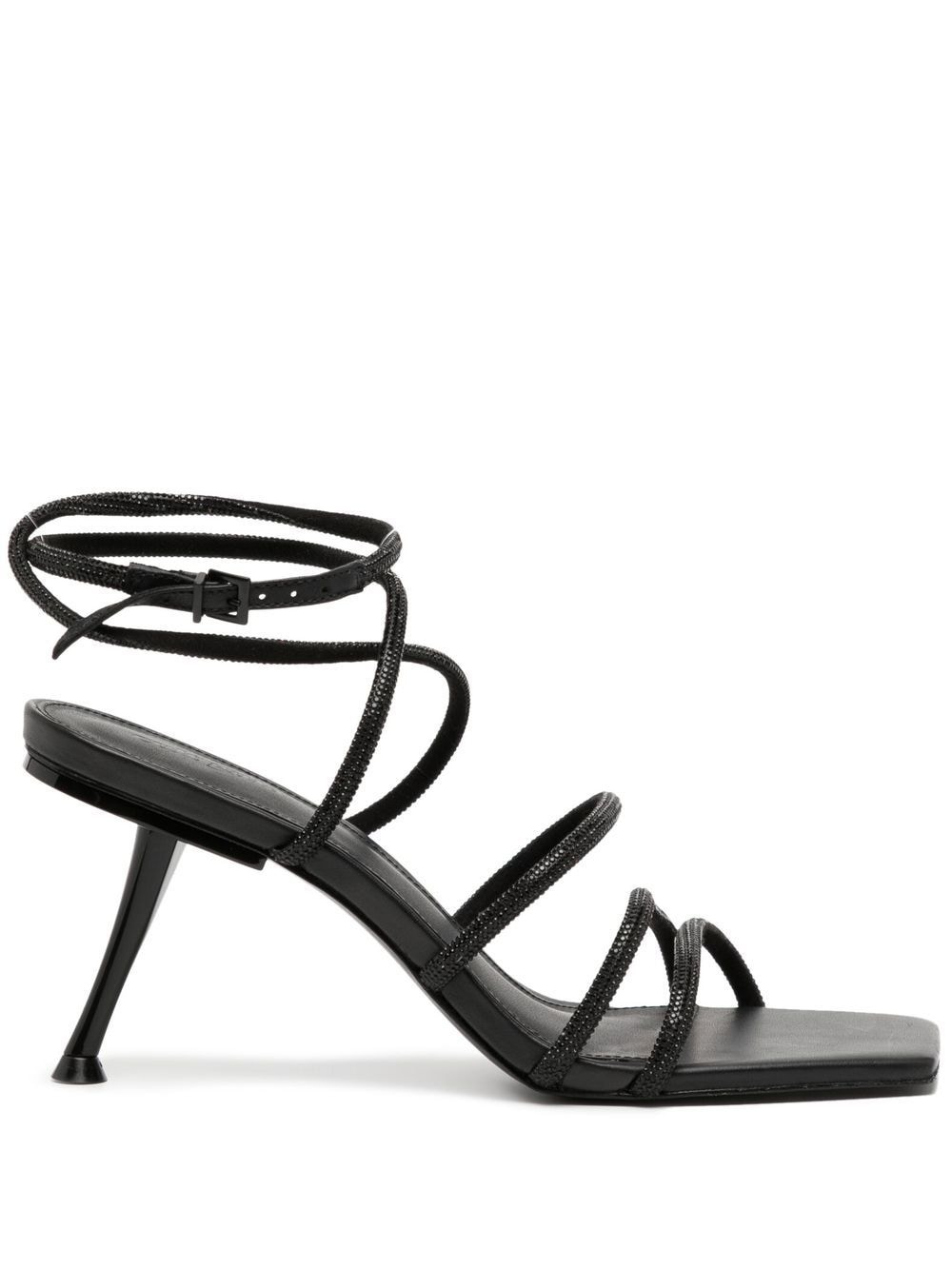 Isa strappy heeled sandals black faux leather crystal embellishment multi-way strap design branded insole square toe open toe buckle-fastening ankle strap high stiletto heel rubber sole Imported Composition Outer: Crystal 100% Sole: Rubber 100% Lining: Polyester 100% SIZE & FIT Measurement HEEL 2.75 in(7 cm)