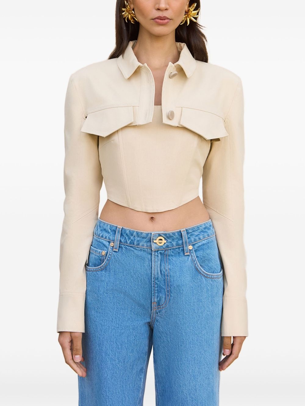 Issa cropped jacket Highlights - Beige - Front button fastening - Long sleeves - Cropped Imported Composition Cotton 100%