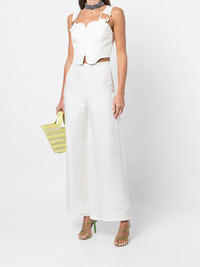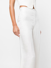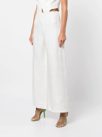 Kora wide-leg trousers Highlights - Off-white - Linen-blend - Lightweight construction - High-waisted - Concealed rear zip fastening - Flared design Imported Composition Body: Linen/Flax 72%, Silk 28% SIZE & FIT Model measurements Height 5 ft 10 in(1.77 m) Bust/Chest 29.92 in(76 cm) Hips 35.03 in(89 cm) Waist 24.01 in(61 cm) FittingInformation This piece fits true to size. We recommend you get your regular size Designed to be fitted at the waist and hips, loose over the leg Made with a lightweight fabric Washing instructions Dry Clean Only