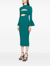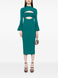 layered cut-out dress Highlights - Teal green - Ribbed knit - Mock neck - Cut-out detailing - Long sleeves - Flared cuffs - Mid-length - Straight hem Imported Composition Viscose 60%, Nylon 40% SIZE & FIT Model measurements Height 5 ft 11 in(1.8 m) Bust/Chest 31.1 in(79 cm) Hips 36.22 in(92 cm) Waist 25.98 in(66 cm) FittingInformation Designed for a slim fit that sits just away from the body offering a close yet comfortable fit Made with a midweight knit, this piece offers some stretch This piece fits true to size – take your usual size