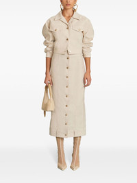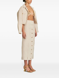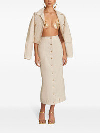 Lua skirt Highlights - Light beige - Cotton-linen blend - Canvas - Vertical seamed - Belt loops - High-waisted - Front button fastening - Mid-length Imported Composition Cotton 85%, Linen/Flax 15%