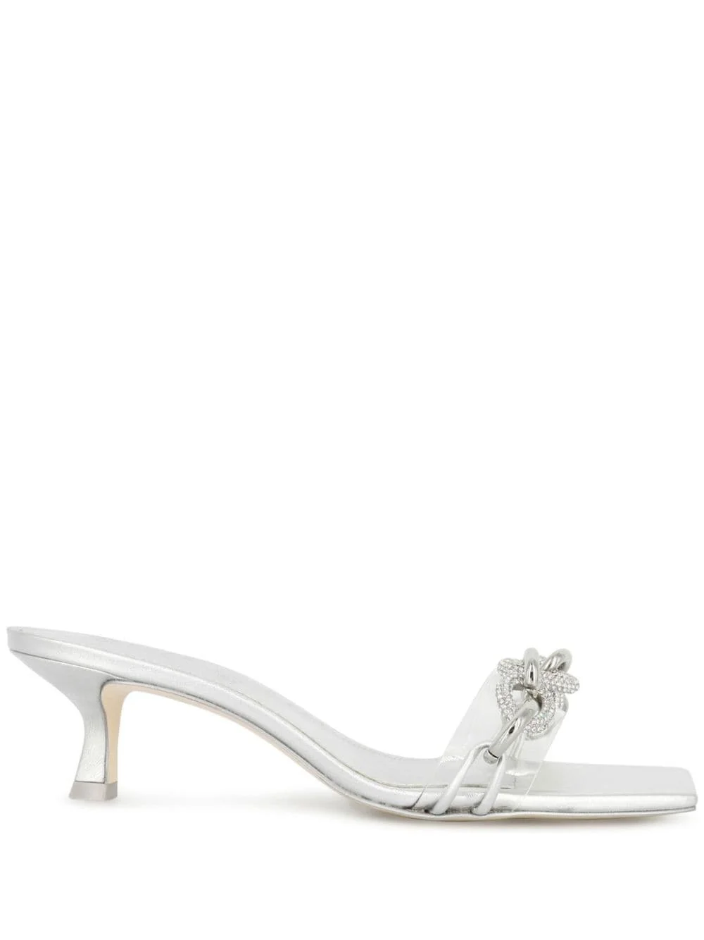 Lynn metallic leather sandals Highlights - Silver-tone - Leather - Metallic finish - Chain-link strap - Crystal embellishment - Open toe - Branded leather insole - Kitten heel Imported Composition PVC 100% SIZE & FIT Measurement HEEL 1.96 in(5 cm)