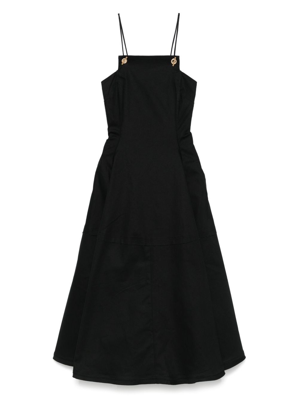 Maka midi dress Highlights - Black - Toggle fastening - Square neck - Spaghetti straps - Eyelet detailing Imported Composition Cotton 97%, Spandex/Elastane 3% SIZE & FIT Model measurements Height 5 ft 11 in(1.8 m) Bust/Chest 31.49 in(80 cm) Hips 36.61 in(93 cm) Waist 24.4 in(62 cm) FittingInformation Designed for a close fit at the chest and waist with a loose fit at the hip Made from a midweight stretch fabric, this piece offers elasticity and flexibility when worn