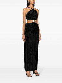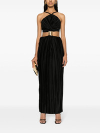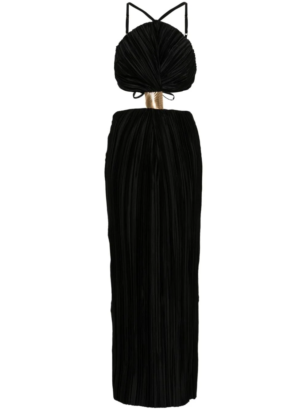 Mitra pleated gathered gown Highlights - Black - Fully pleated - Brushed shell hardware detailing - Gathered detailing - Column silhouette - Halterneck - Adjustable spaghetti straps - Rear criss-cross straps - Rear tie fastening - Open back - Concealed rear hook and zip fastening - Rear slit - Full lining - Maxi Imported Composition Polyester 100% SIZE & FIT Model measurements Height 5 ft 11 in(1.8 m) Bust/Chest 32.67 in(83 cm) Hips 35.82 in(91 cm) Waist 24.8 in(63 cm) FittingInformation Designed for a slim fit that sits just away from the body offering a close yet comfortable fit Made from a midweight non-stretch fabric This piece fits true to size – take your usual size Measurement HIPS 34.01 in(86.4 cm) LENGTH 52 in(132.1 cm) WAIST 24.01 in(61 cm) BUST 32 in(81.3 cm) Washing instructions Hand Wash
