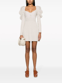 mutton-sleeve ribbed minidress Highlights - Ecru - Cotton - Ribbed knit - 3d-knit construction - V-neck - Scoop back - Mutton sleeves - Fully pleated - Thigh-length - Straight hem Imported Composition Cotton 100% SIZE & FIT Model measurements Height 5 ft 11 in(1.8 m) Bust/Chest 30.7 in(78 cm) Hips 35.03 in(89 cm) Waist 24.4 in(62 cm) FittingInformation Designed for a slim fit that sits just away from the body offering a close yet comfortable fit Made with a midweight knit, this piece offers some stretch This piece fits true to size – take your usual size Washing instructions Hand Wash