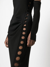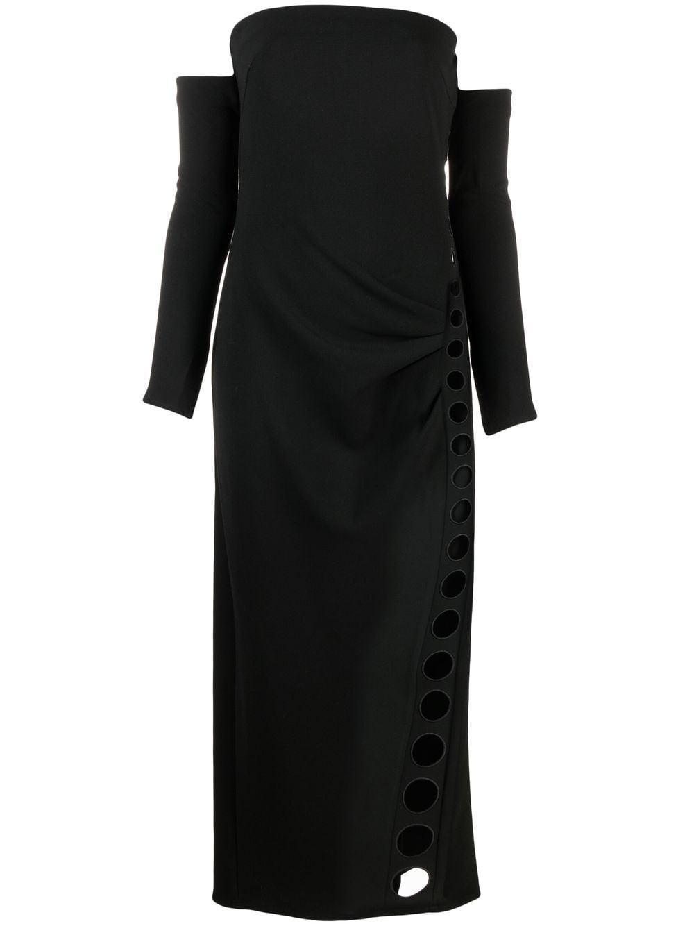 off-shoulder midi dress black off-shoulder long sleeves split cuffs concealed rear zip fastening cut-out detailing mid-length Imported Composition Polyester 66%, Rayon 31%, Elastane 3% SIZE & FIT Model measurements Height 5 ft 11 in(1.8 m) Bust/Chest 31.49 in(80 cm) Hips 36.61 in(93 cm) Waist 24.4 in(62 cm) FittingInformation This piece fits true to size. We recommend you get your regular size Designed for a close fit at the bust, waist and hips Made with a mid-weight stretch fabric Washing instructions Dry Clean Only