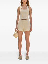 Olga mini shorts Highlights - Off-white - Cotton blend - Distressed finish - Mid-rise - Turn-up hem - Thigh-length Imported Composition Cotton 68%, Polyester 18%, Viscose 8%, Wool 5%, Elastane 1%