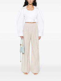 Pompori wide-leg trousers Highlights - Beige - Textured finish - High waist - Pleat detailing - Two side inset pockets - Wide leg - Concealed rear zip fastening Imported Composition Polyester 56%, Cotton 44% SIZE & FIT Model measurements Height 5 ft 10 in(1.78 m) Bust/Chest 33.07 in(84 cm) Hips 35.82 in(91 cm) Waist 25.98 in(66 cm) FittingInformation Designed with a wide-leg cut, these trousers allow for a close fit at the waist and offer a loose and roomy fit over the leg Made from a midweight non-stretch fabric This piece fits true to size – take your usual size Measurement FRONT RISE 12 in(30.5 cm) INSIDE LEG 32.99 in(83.8 cm) BACK RISE 14.01 in(35.6 cm) HIPS 40 in(101.6 cm) Hem Width 25.98 in(66 cm) WAIST 27.99 in(71.1 cm)