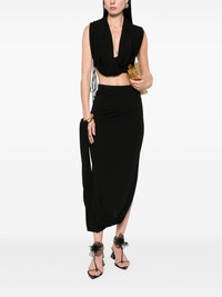 Sola maxi skirt Highlights - Black - Elasticated waistband - Side slit - Ring hardware detailing Imported Composition Viscose 100% SIZE & FIT Model measurements Height 5 ft 10 in(1.78 m) Bust/Chest 33.46 in(85 cm) Hips 36.22 in(92 cm) Waist 23.22 in(59 cm) FittingInformation Designed with an asymmetric hem, this skirt is intended to be worn high on the waist The elasticated waist allows for a comfortable fit Made from a midweight stretch fabric, this piece offers elasticity and flexibility when worn