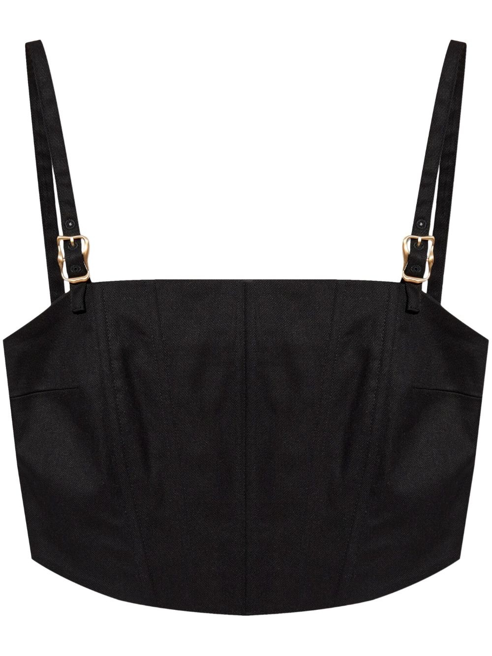 square-neck crop top Highlights - Black - Rear buckle fastening - Two adjustable shoulder straps - Open back Imported Composition Cotton 100%
