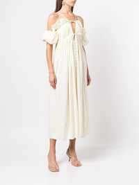 Starla off-shoulder dress Starla off-shoulder dress from CULT GAIA featuring off-white, linen blend, cut-out detailing, off-shoulder and mid-length. Imported Composition Linen/Flax 100% SIZE & FIT Model measurements Height 5 ft 10 in(1.77 m) Bust/Chest 33.85 in(86 cm) Hips 35.03 in(89 cm) Waist 24.01 in(61 cm) FittingInformation This piece fits true to size. We recommend you get your regular size Designed for a close fit at the bust and waist, but loose at the hip Made with a heavyweight fabric