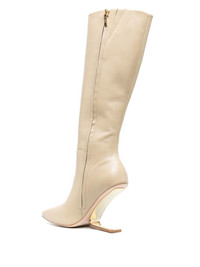 suspended-heel 105mm long boots ecru leather side zip fastening pointed toe signature suspension heel knee-length Imported Composition Leather 100% SIZE & FIT Measurement CIRCUMFERENCE 14.17 in(36 cm) HEEL 4.13 in(10.5 cm) HEIGHT 14.56 in(37 cm)