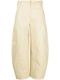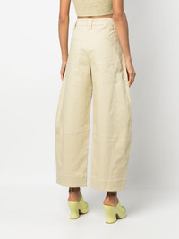 tapered wide-leg trousers khaki stretch-cotton seam detailing high-waisted wide leg tapered leg cropped concealed front fastening belt loops two diagonal pockets to the sides two rear patch pockets Imported Composition Cotton 97%, Spandex/Elastane 3% SIZE & FIT Model measurements Height 5 ft 10 in(1.78 m) Bust/Chest 33.07 in(84 cm) Hips 36.61 in(93 cm) Waist 24.8 in(63 cm) FittingInformation This piece fits true to size. We recommend you get your regular size Designed to be fitted at the waist and hips, loose over the leg Made with a mid-weight stretch fabric Washing instructions Dry Clean Only