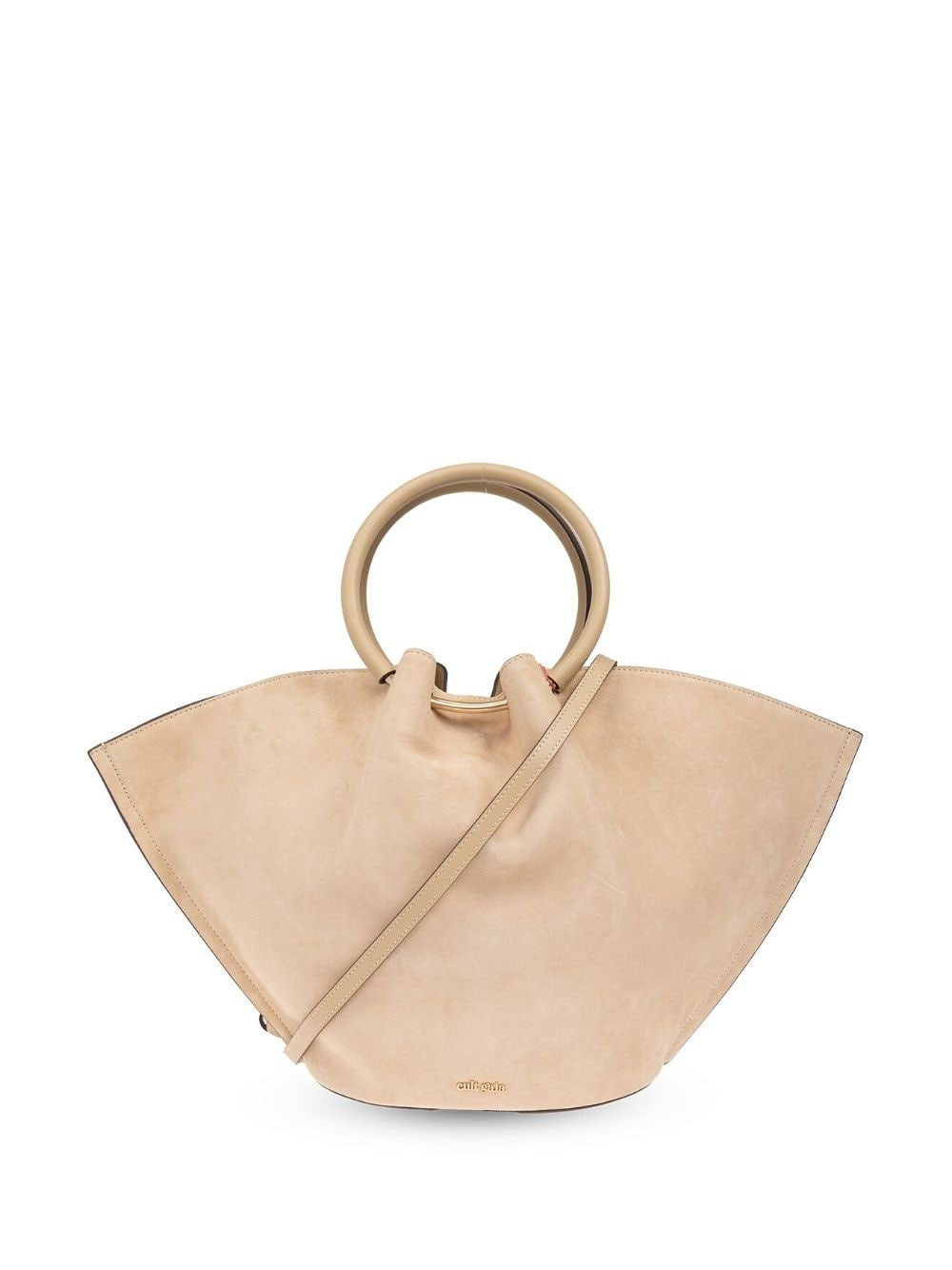 Valeska tote bag Highlights - Sand beige - Calf leather - Open top - Two metallic top handles - Ruched detailing - Adjustable detachable shoulder strap - Gold-tone logo lettering - Main compartment Imported Composition Lining: Vegetal Leather 50%, Nylon 50% Outer: Calf Leather 100% SIZE & FIT Measurement DEPTH 6 in(15.2 cm) HEIGHT 12 in(30.4 cm) WIDTH 22 in(55.8 cm)