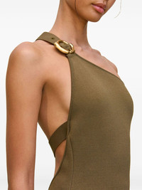 Vance dress Highlights - Khaki - Buckle fastening - One-shoulder - Low back - Mid-length Imported Composition Rayon 53%, Nylon 46%, Spandex/Elastane 1%
