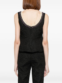 bead-embellished vest black scoop neck sleeveless Imported Composition Polyester 100% SIZE & FIT Model measurements Height 5 ft 10 in(1.77 m) Bust/Chest 29.33 in(74.5 cm) Hips 32.28 in(82 cm) Waist 24.01 in(61 cm) FittingInformation Designed for a close fit at the chest and waist with a loose fit at the hip Made from a midweight non-stretch fabric Washing instructions Dry Clean Only