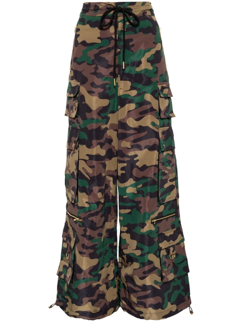 camouflage track pants Highlights - Green/multicolour - Shell - Front button and zip fastening - Drawstring waist - Camouflage pattern - Four side zip-fastening pockets - Two rear flap pockets - Four side flap pockets - Two side button-fastening pockets - Gold-tone hardware - Drawstring hem Imported Composition Polyester 100%