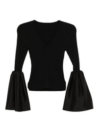 Combo top Highlights - Black - Flared long sleeves - V-neck Imported Composition Silk 25%, Wool 25%, Polyamide 25%, Viscose 25% SIZE & FIT Model measurements Height 5 ft 10 in(1.77 m) Bust/Chest 29.33 in(74.5 cm) Hips 32.28 in(82 cm) Waist 24.01 in(61 cm) FittingInformation Designed for a close fit at the chest and waist with a loose fit at the hip Made from a midweight non-stretch fabric Washing instructions Dry Clean Only