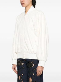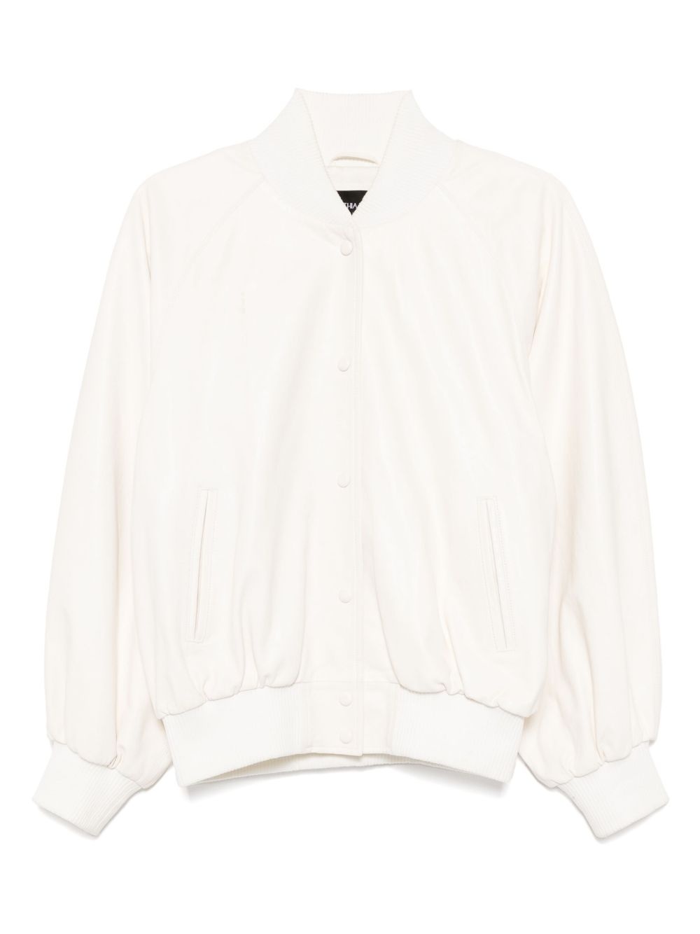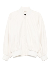 Downtown leather bomber jacket Highlights - Off-white - Front press-stud fastening - Baseball collar - Ribbed cuffs and hem Imported Composition Outer: Leather 100% SIZE & FIT Model measurements Height 5 ft 10 in(1.77 m) Bust/Chest 31.49 in(80 cm) Hips 35.43 in(90 cm) Waist 25.19 in(64 cm) FittingInformation Designed to be unstructured, offering a loose fit throughout The ribbed hem offers a close, comfortable fit Made from a midweight fabric